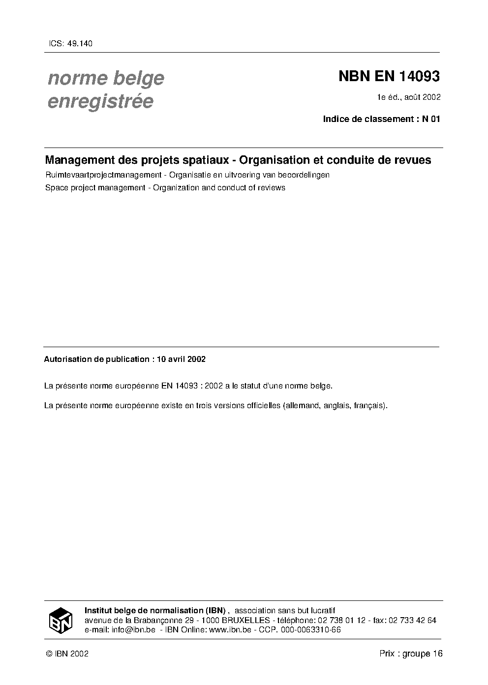 | Publisher | Bureau de Normalisation Belge (NBN) |