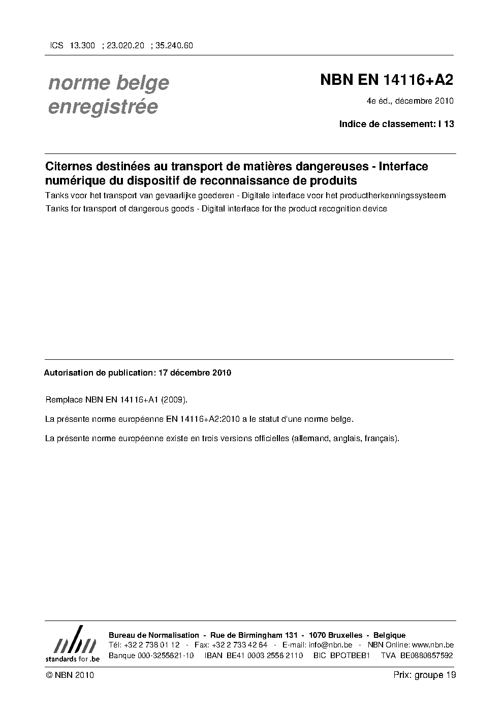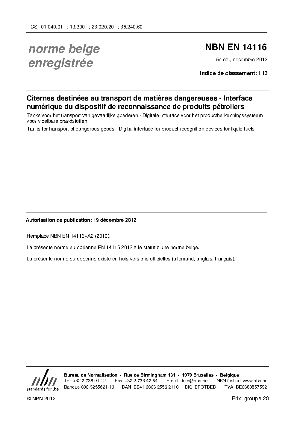| Publisher | Bureau de Normalisation Belge (NBN) |