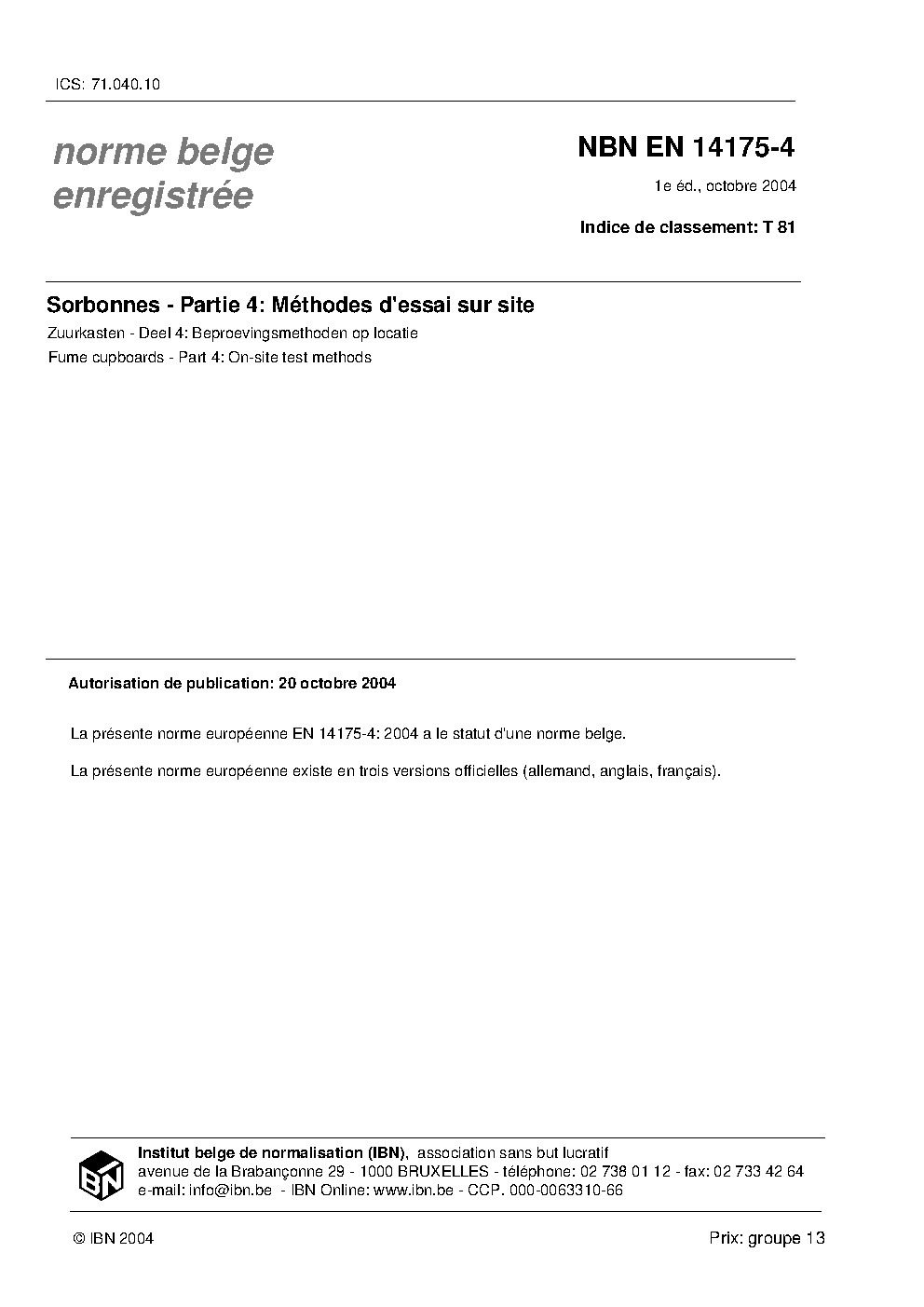 | Publisher | Bureau de Normalisation Belge (NBN) |