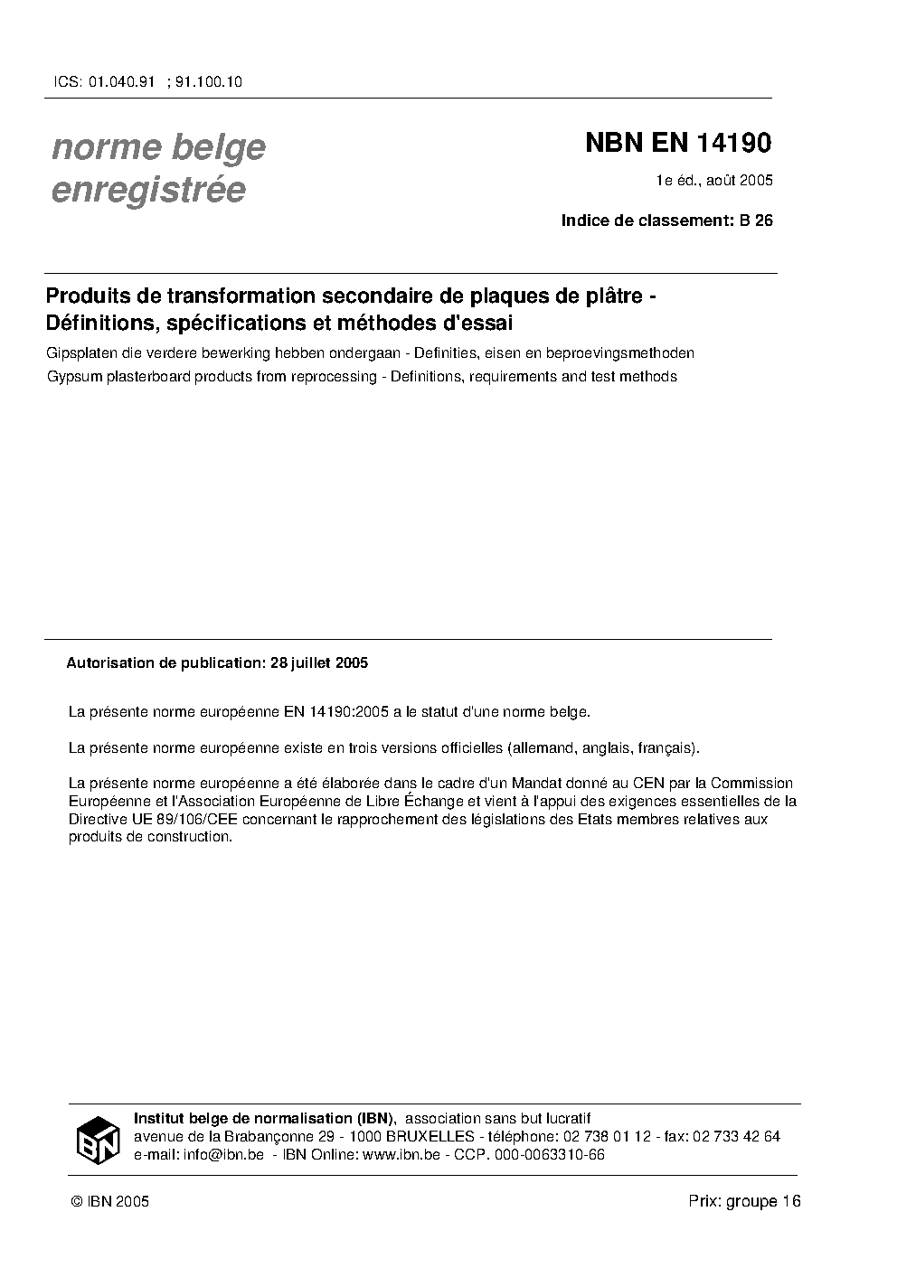 | Publisher | Bureau de Normalisation Belge (NBN) |