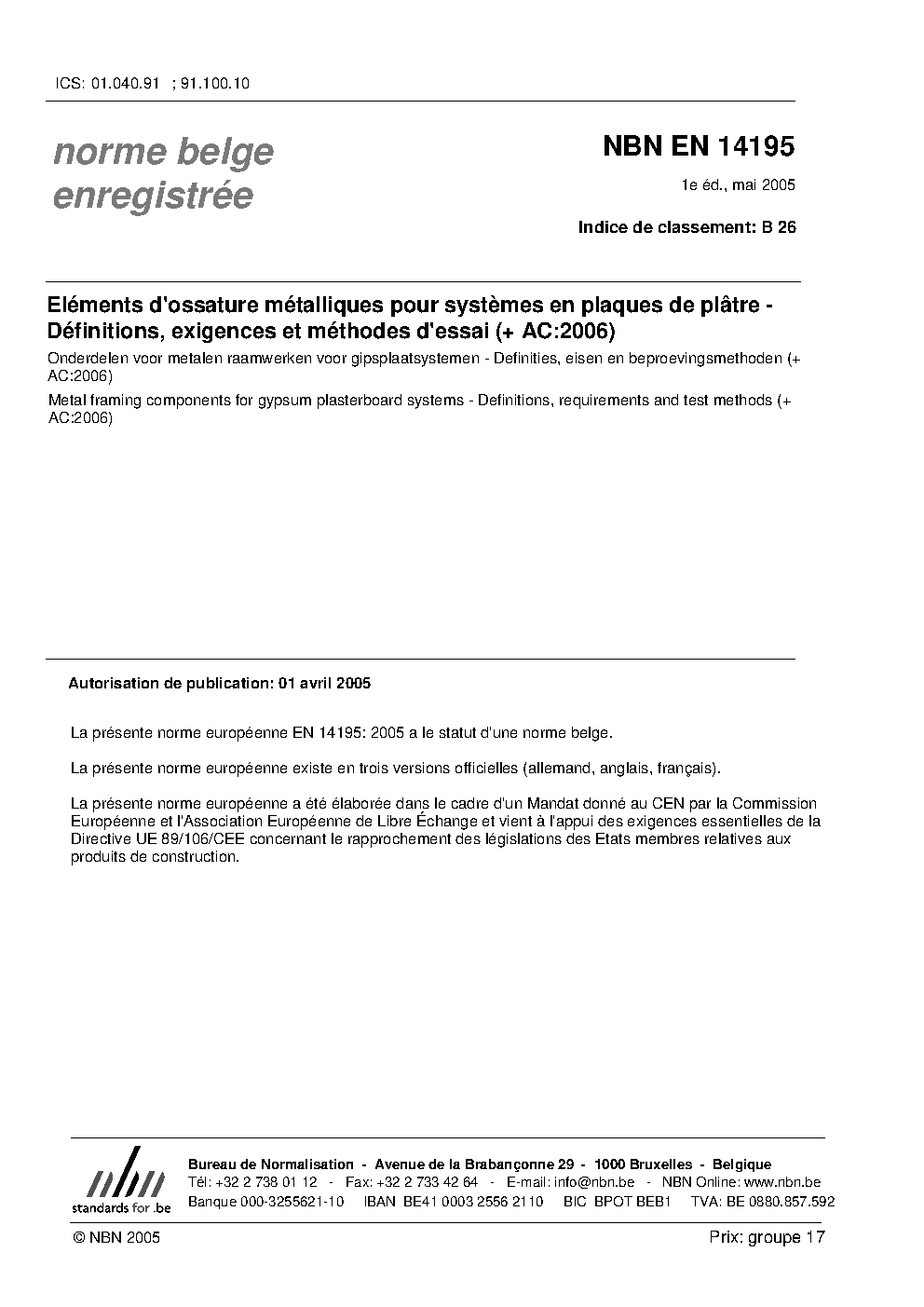 | Publisher | Bureau de Normalisation Belge (NBN) |