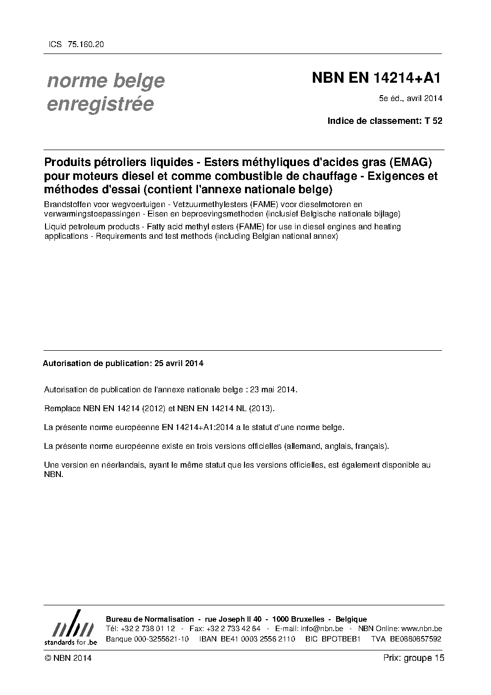 | Publisher | Bureau de Normalisation Belge (NBN) |