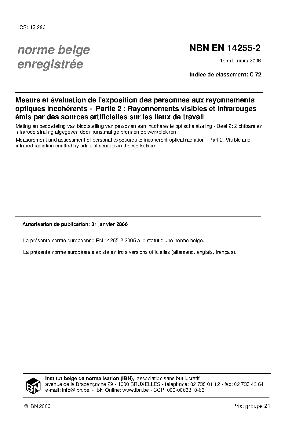 | Publisher | Bureau de Normalisation Belge (NBN) |