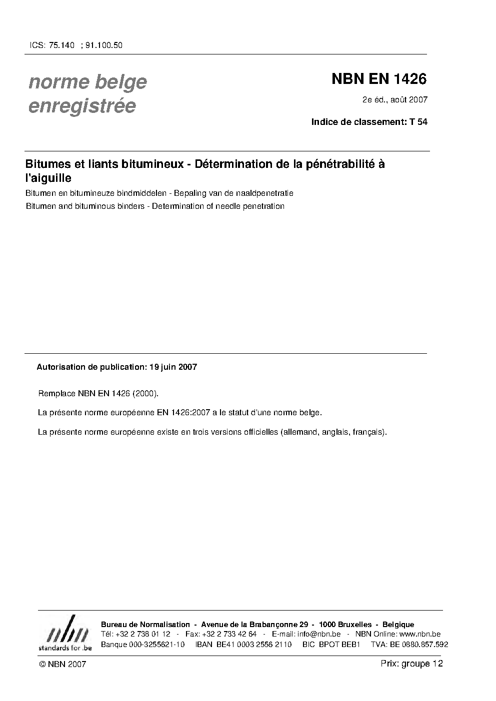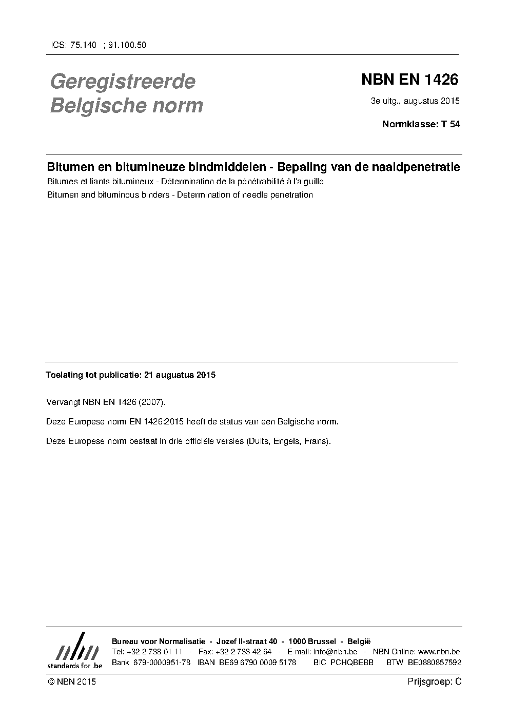 | Publisher | Bureau de Normalisation Belge (NBN) |