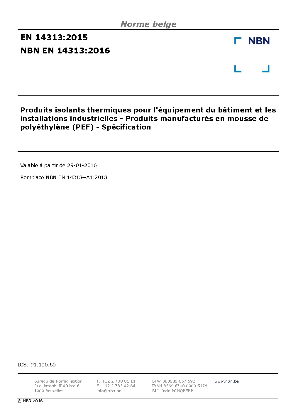 | Publisher | Bureau de Normalisation Belge (NBN) |