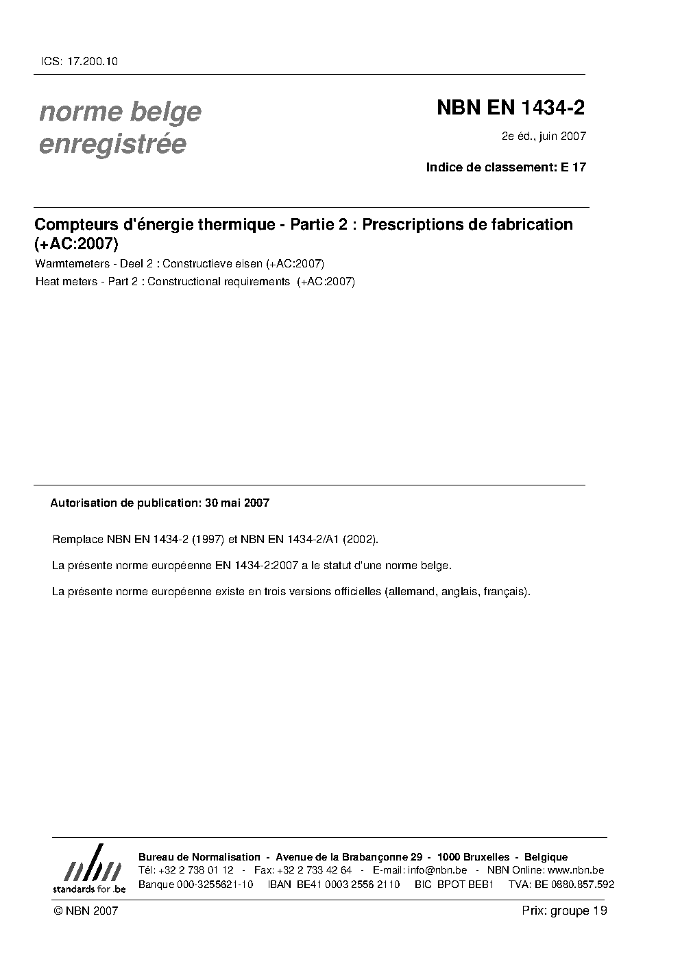 | Publisher | Bureau de Normalisation Belge (NBN) |