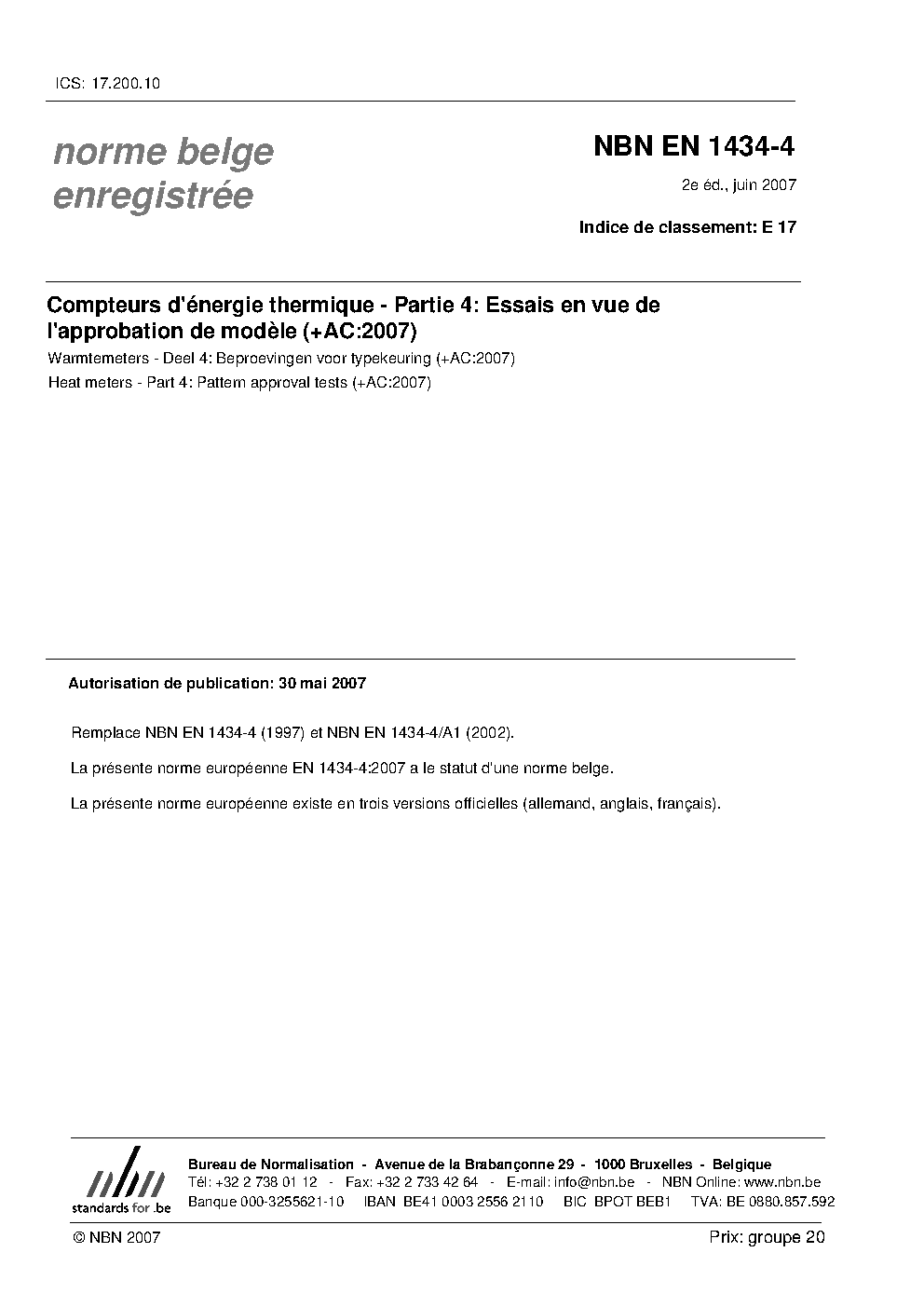 | Publisher | Bureau de Normalisation Belge (NBN) |