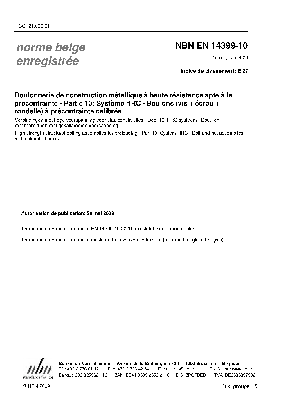 | Publisher | Bureau de Normalisation Belge (NBN) |