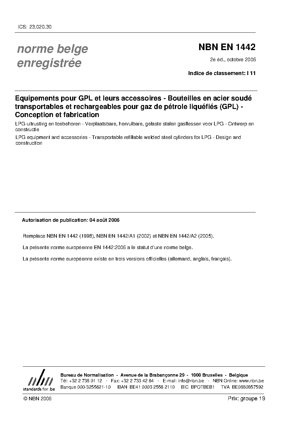 | Publisher | Bureau de Normalisation Belge (NBN) |