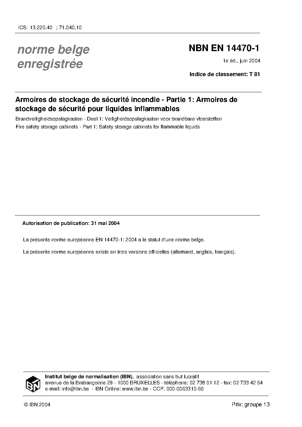 | Publisher | Bureau de Normalisation Belge (NBN) |