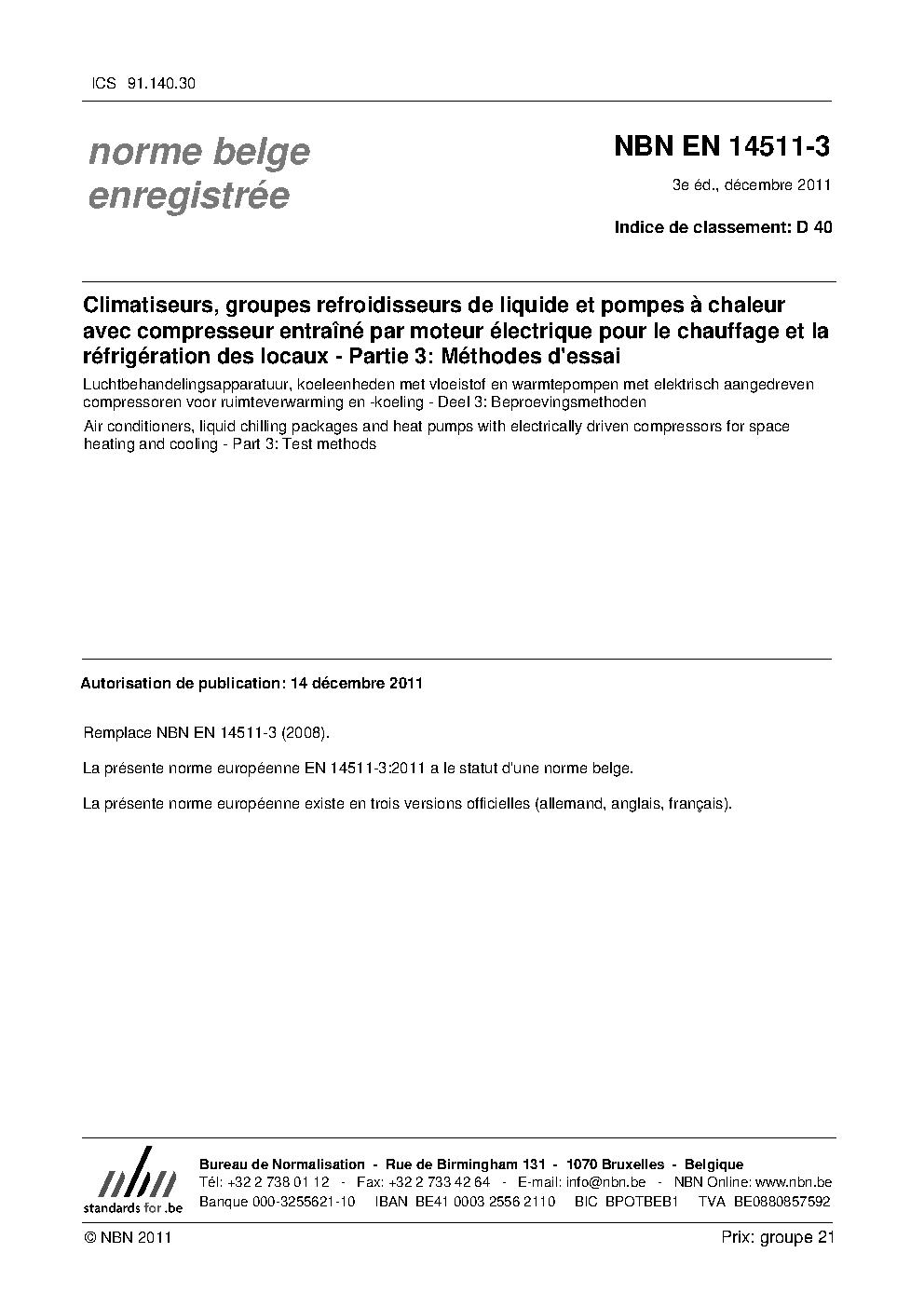 | Publisher | Bureau de Normalisation Belge (NBN) |