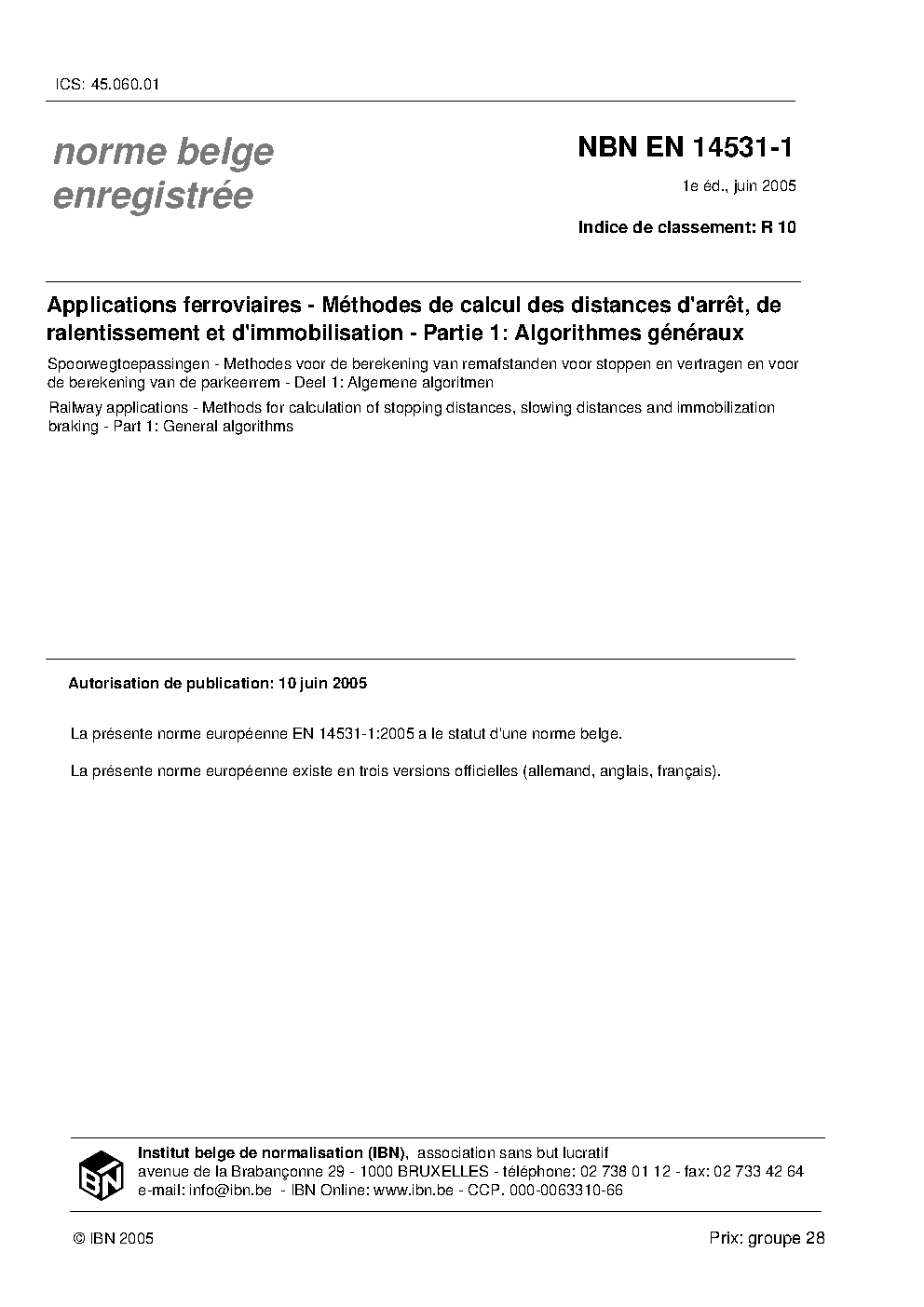 | Publisher | Bureau de Normalisation Belge (NBN) |