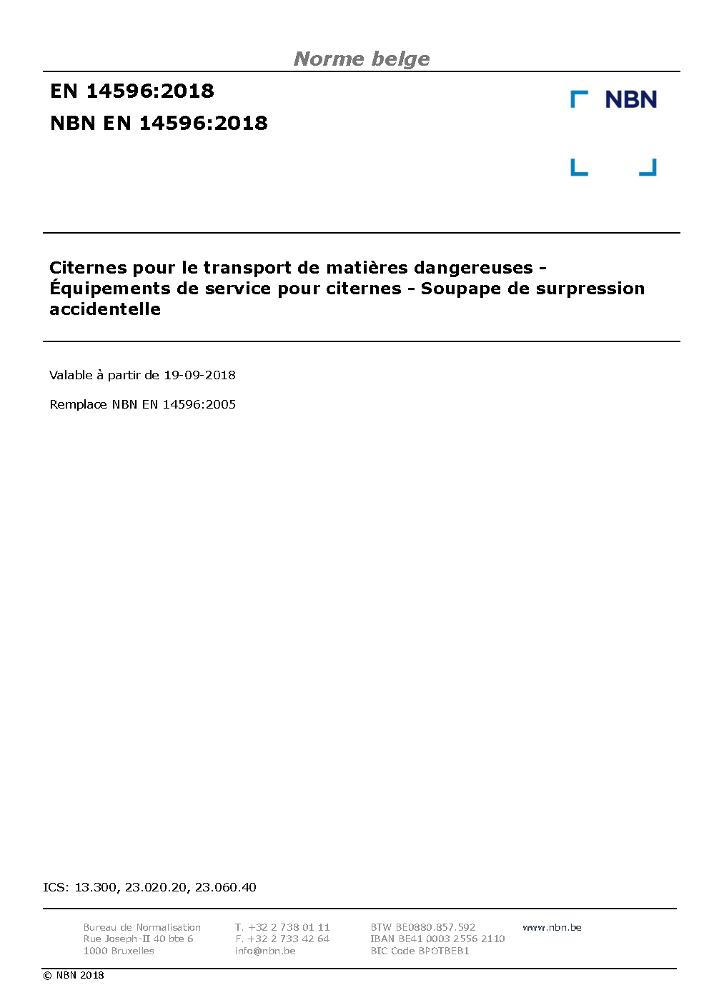 | Publisher | Bureau de Normalisation Belge (NBN) |