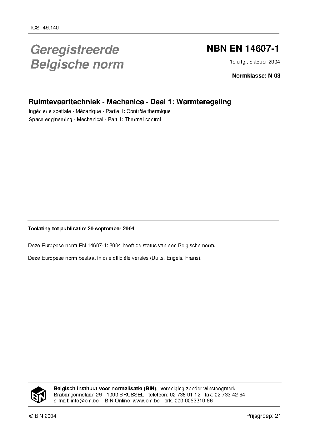 | Publisher | Bureau de Normalisation Belge (NBN) |