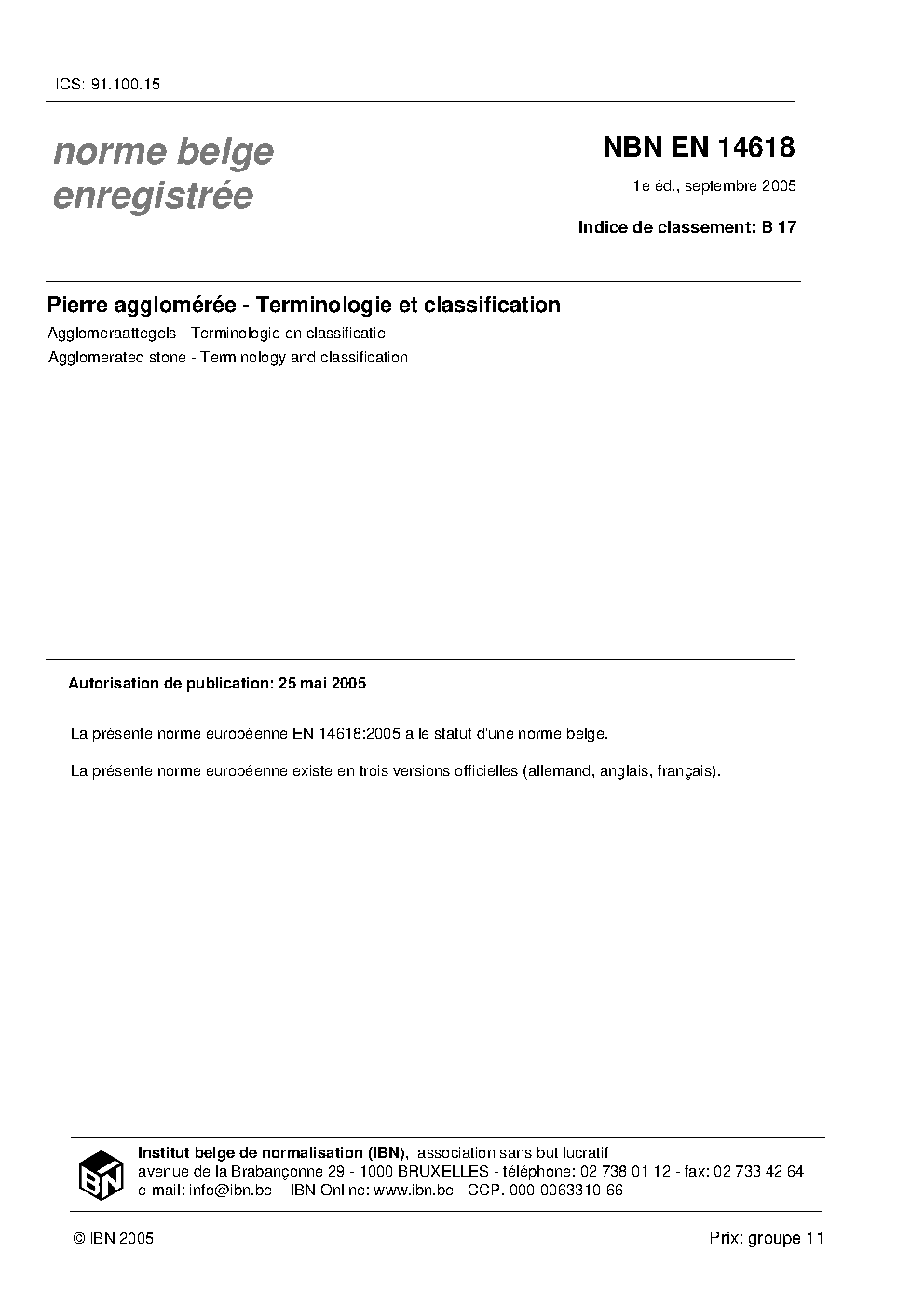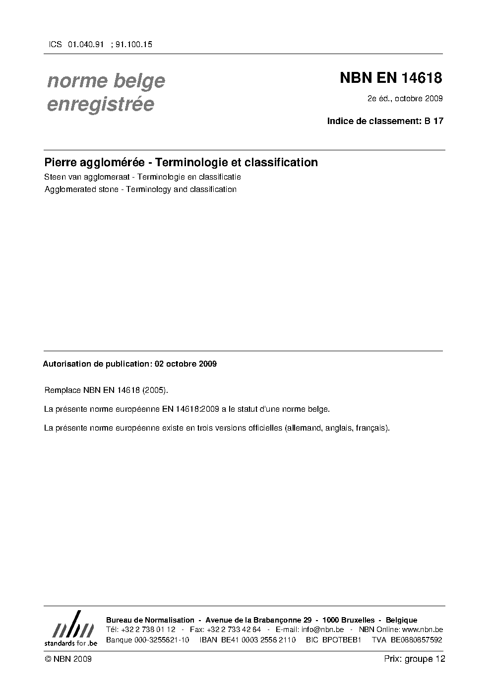 | Publisher | Bureau de Normalisation Belge (NBN) |
