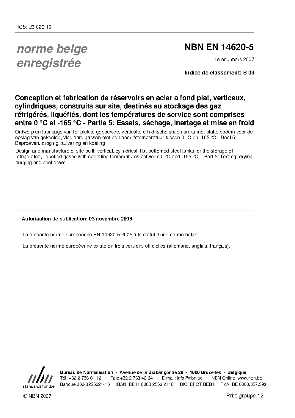 | Publisher | Bureau de Normalisation Belge (NBN) |