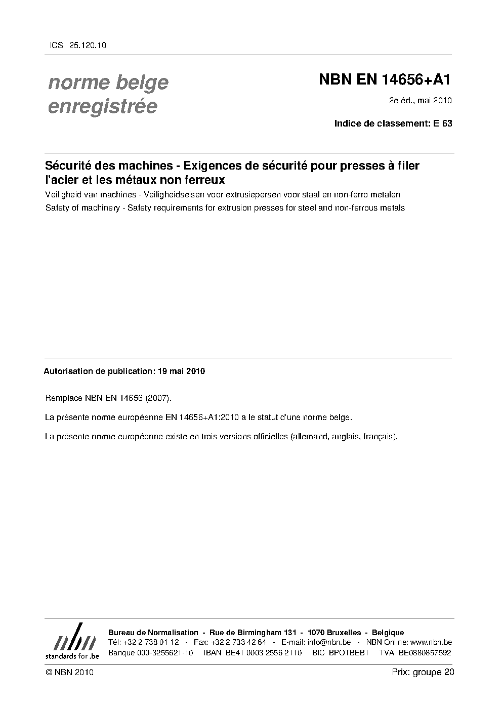 | Publisher | Bureau de Normalisation Belge (NBN) |