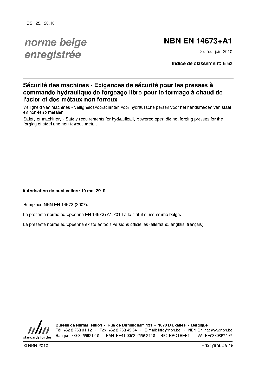 | Publisher | Bureau de Normalisation Belge (NBN) |
