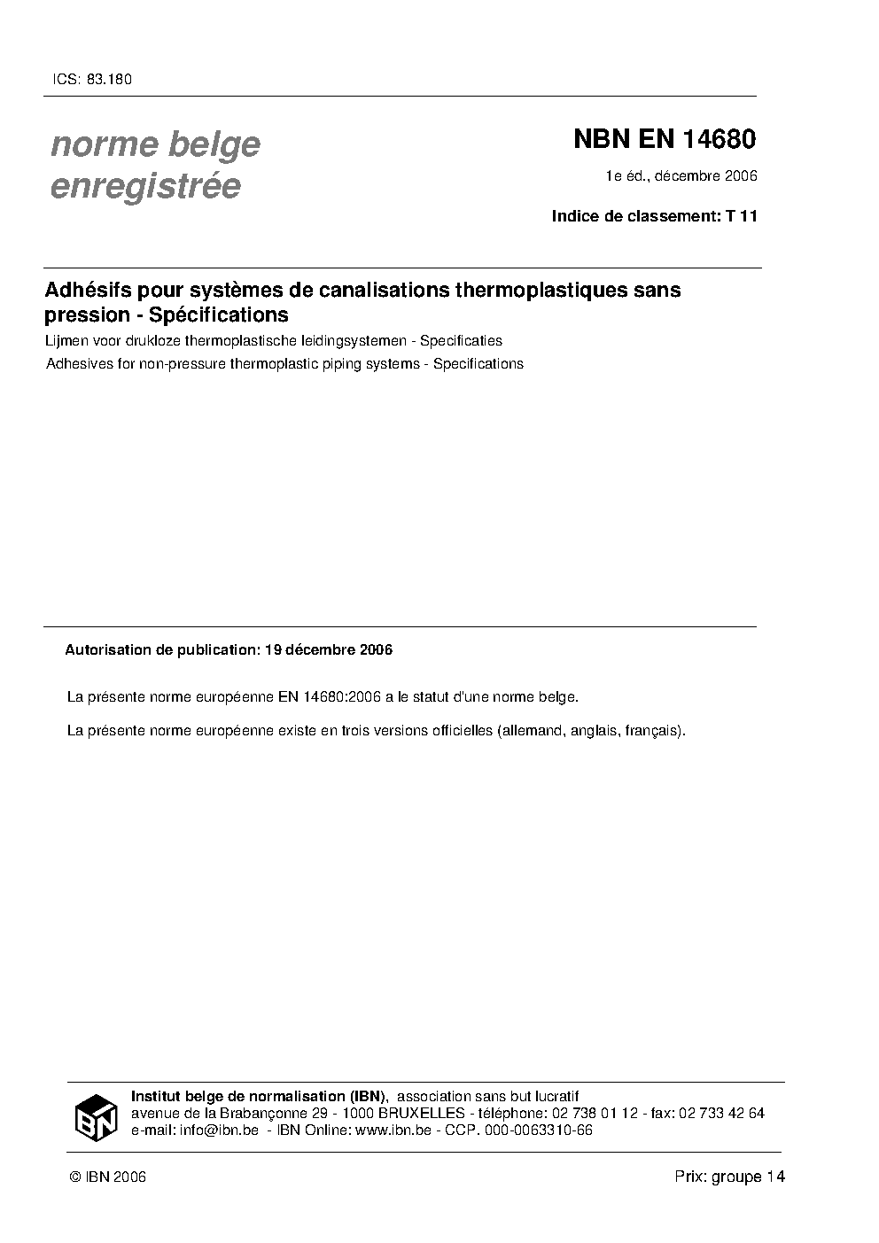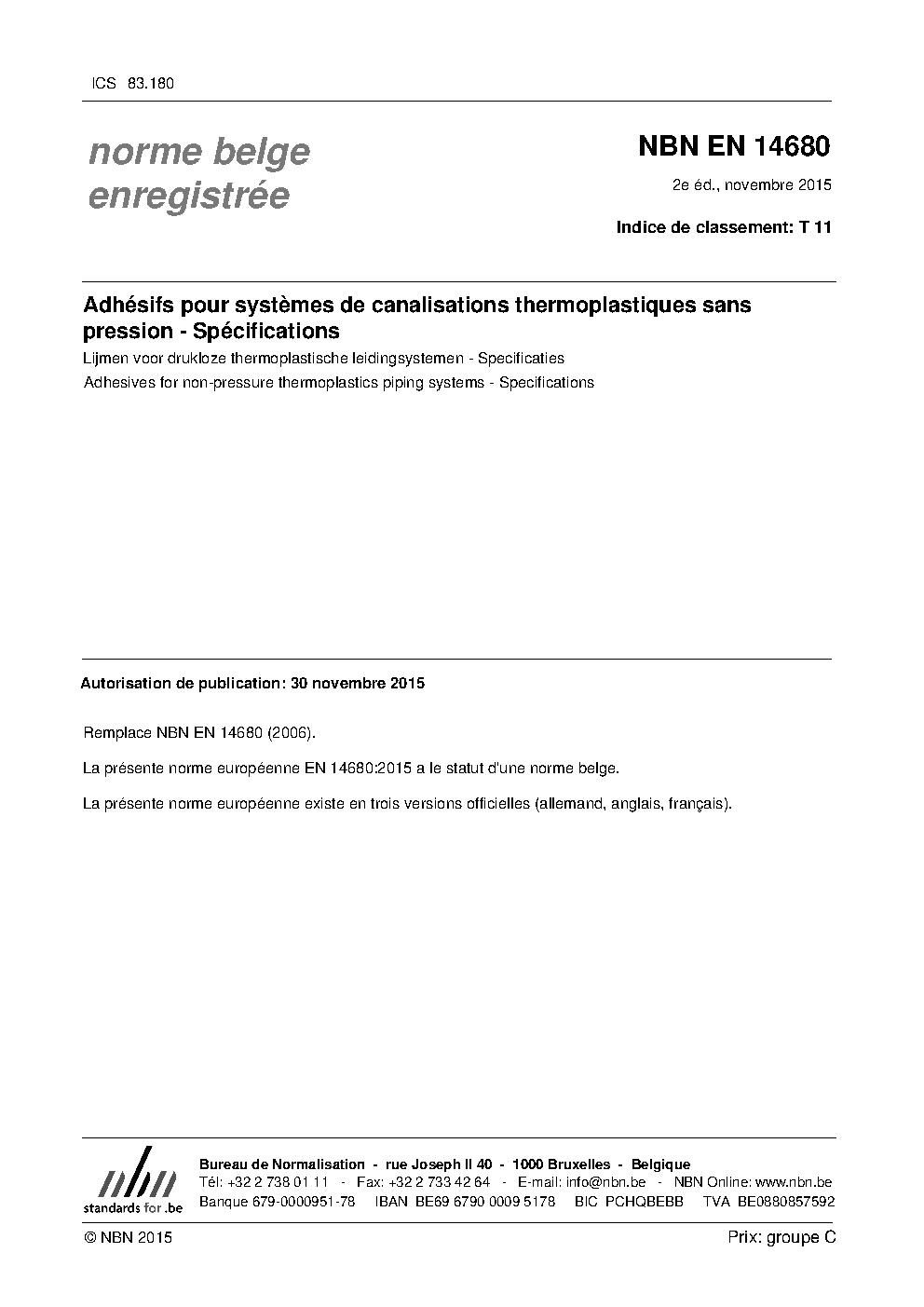 | Publisher | Bureau de Normalisation Belge (NBN) |