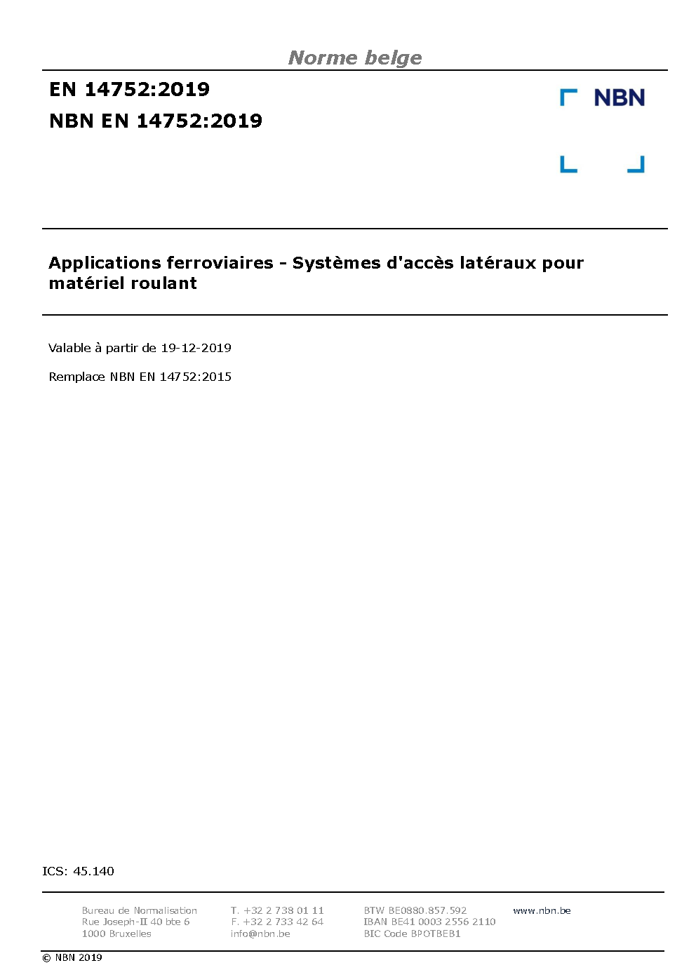 NBN EN 14752:2019