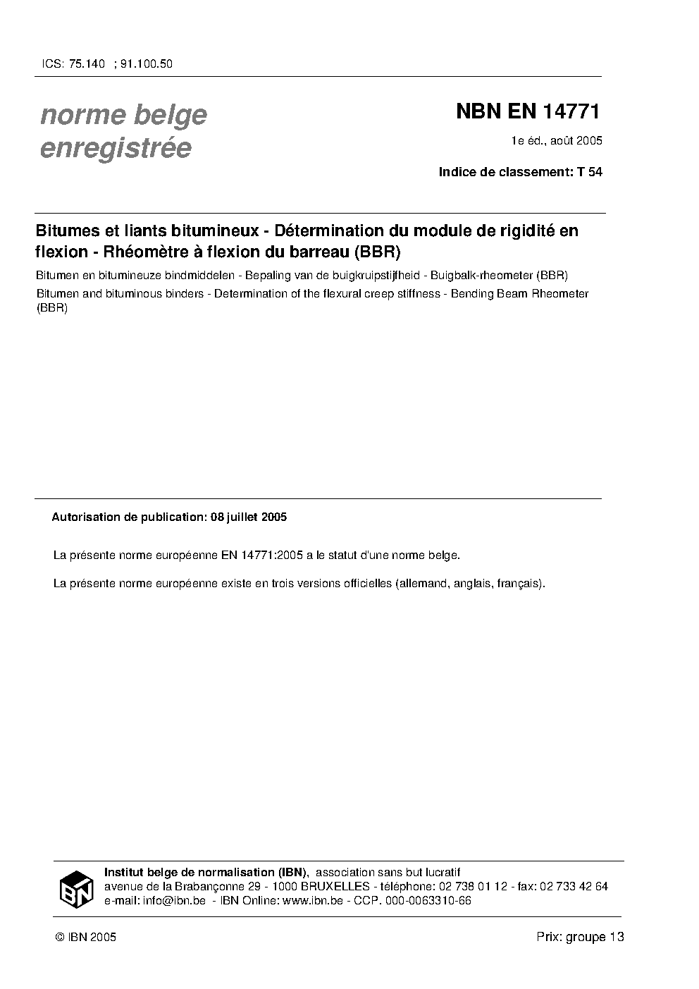 | Publisher | Bureau de Normalisation Belge (NBN) |