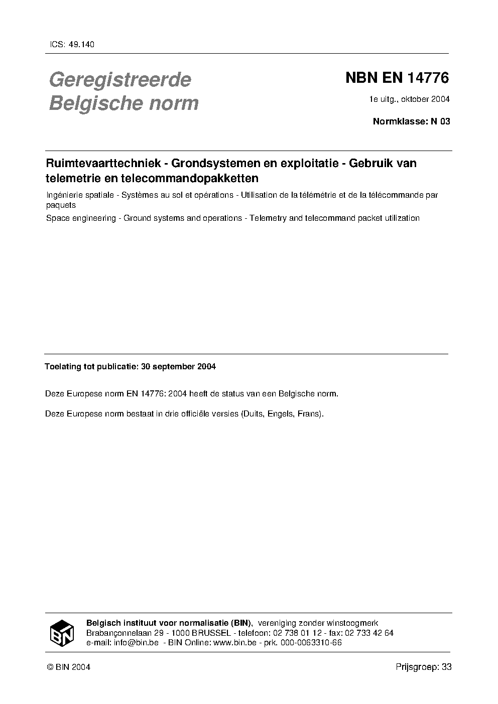 | Publisher | Bureau de Normalisation Belge (NBN) |