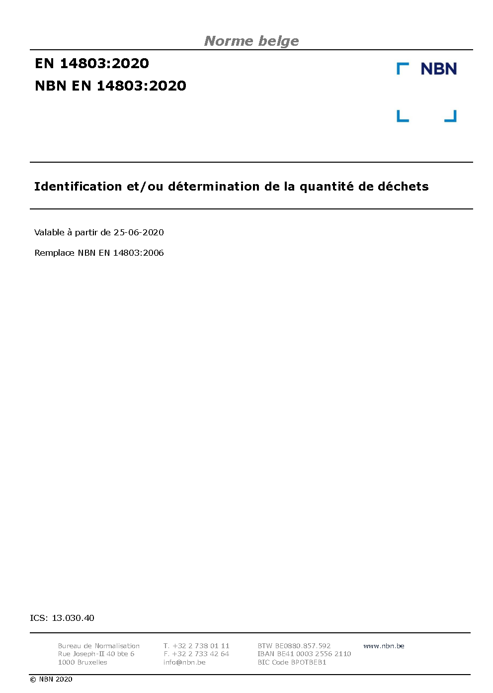 | Publisher | Bureau de Normalisation Belge (NBN) |