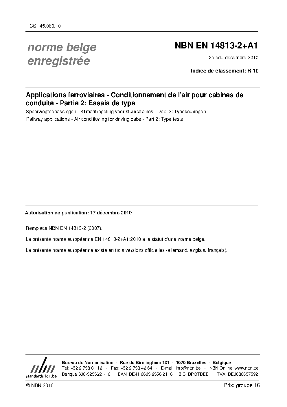 | Publisher | Bureau de Normalisation Belge (NBN) |