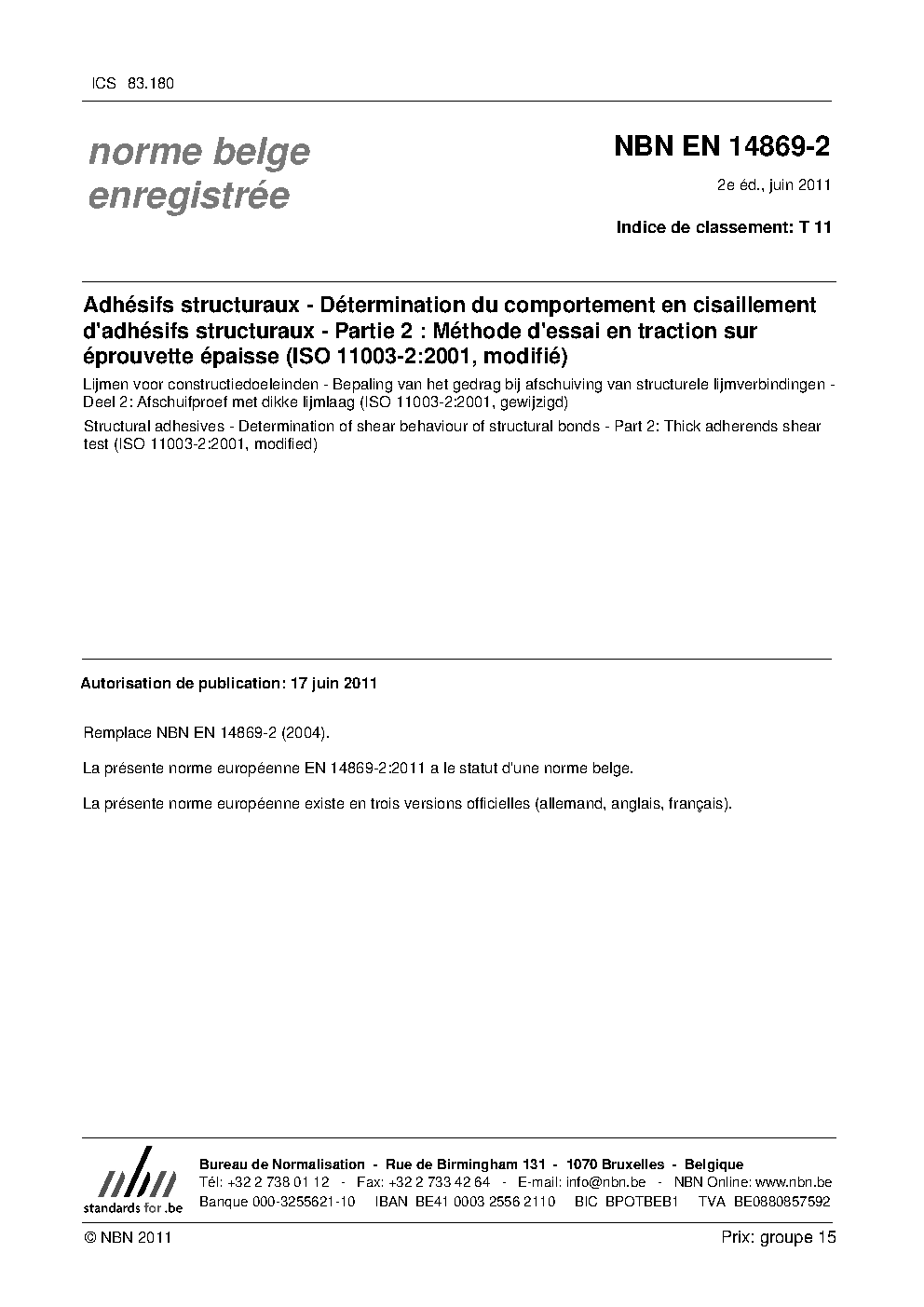 | Publisher | Bureau de Normalisation Belge (NBN) |