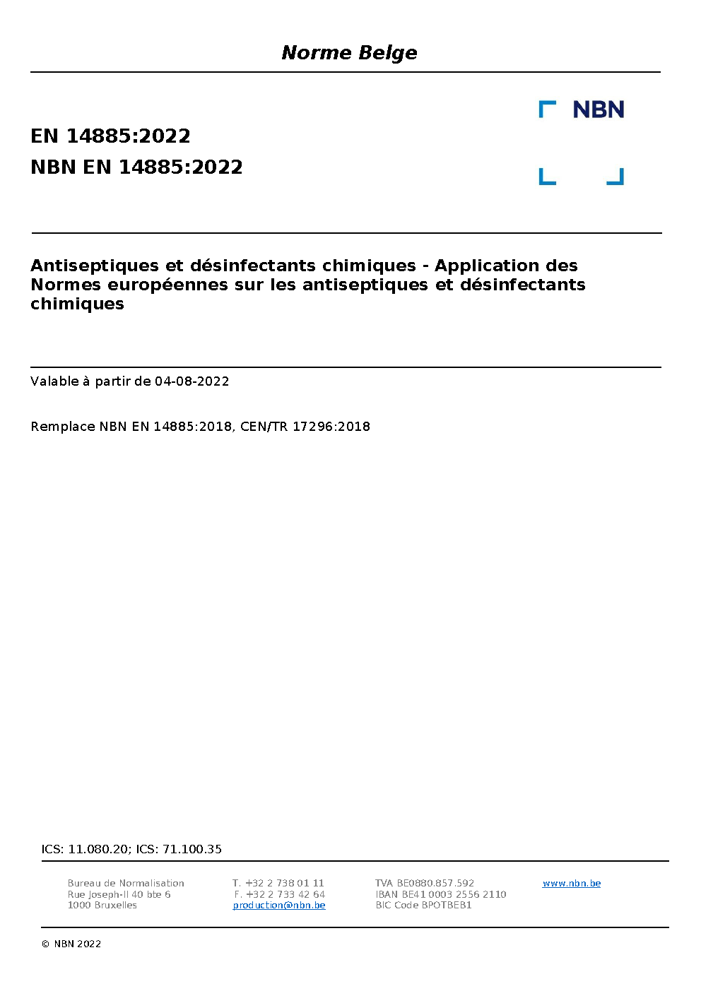 This document specifies the European Standards to which products have to conform in order to support the claims for microbicidal activity which are referred to in this document.