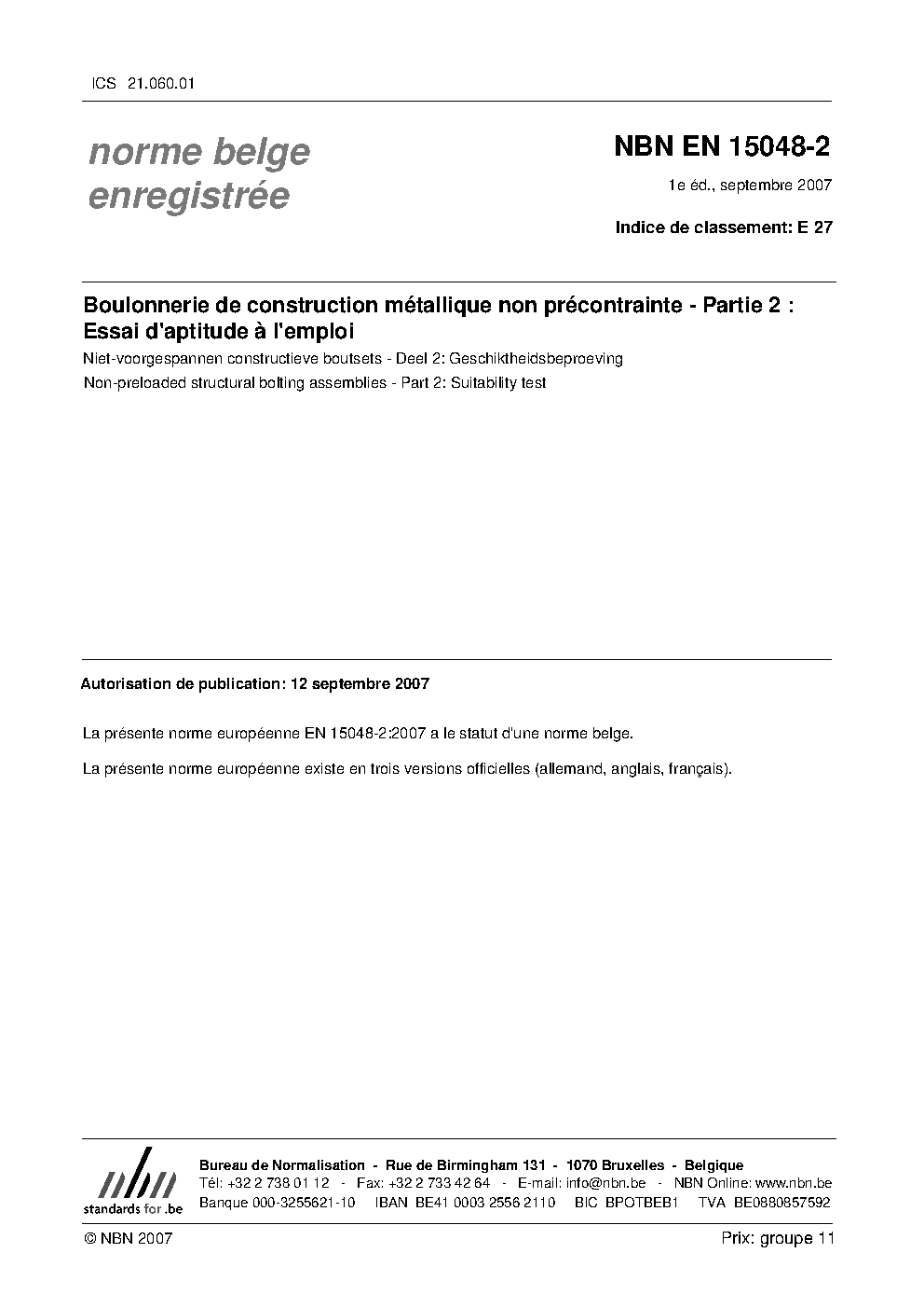 | Publisher | Bureau de Normalisation Belge (NBN) |
