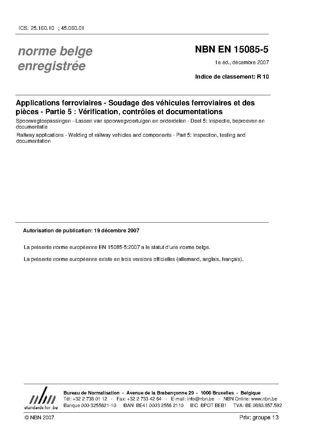 | Publisher | Bureau de Normalisation Belge (NBN) |