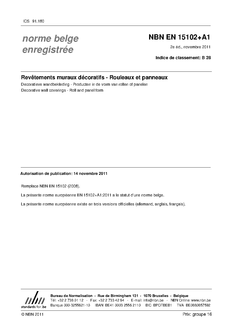 | Publisher | Bureau de Normalisation Belge (NBN) |