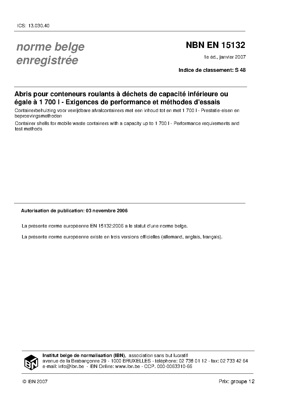 | Publisher | Bureau de Normalisation Belge (NBN) |