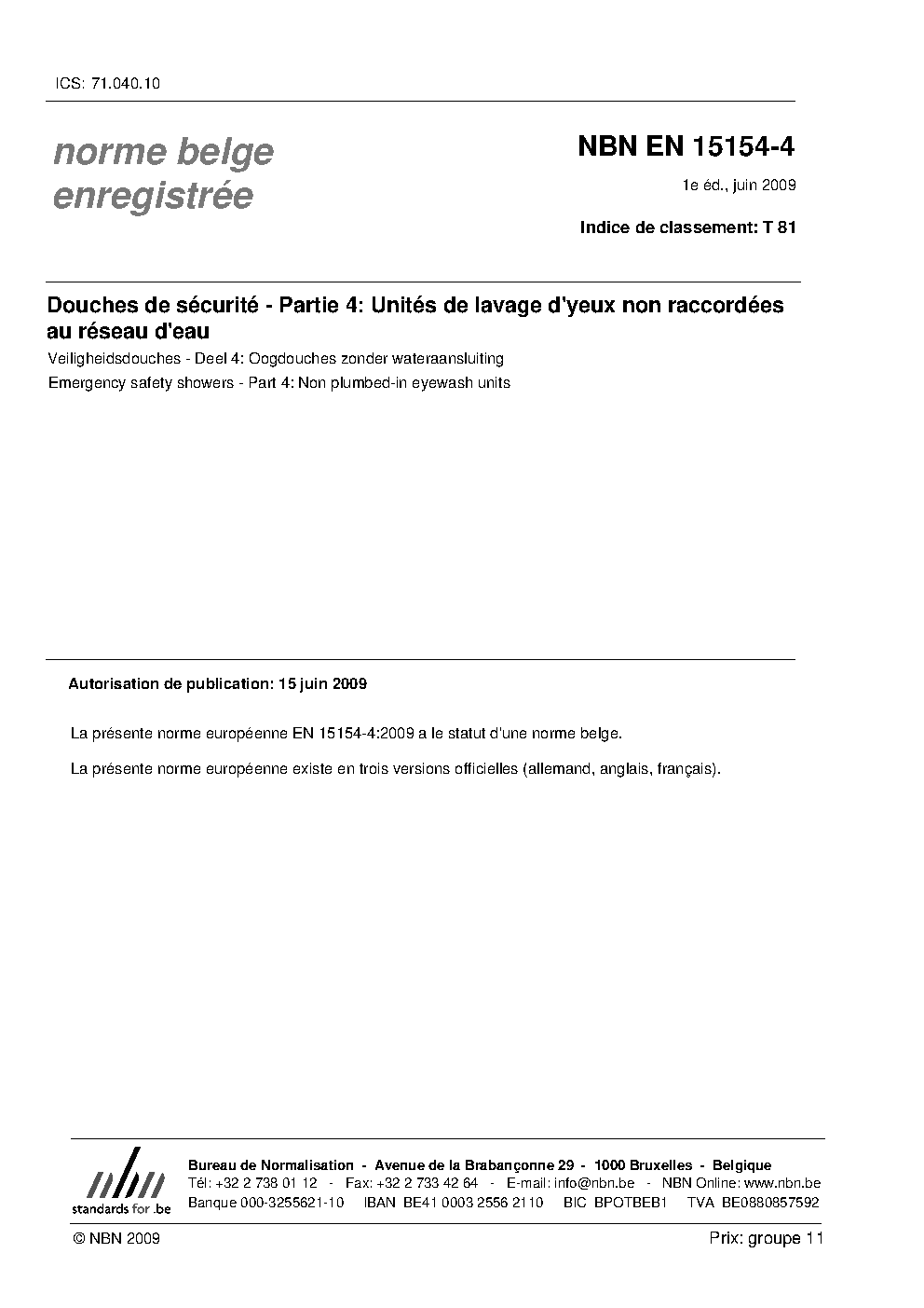| Publisher | Bureau de Normalisation Belge (NBN) |