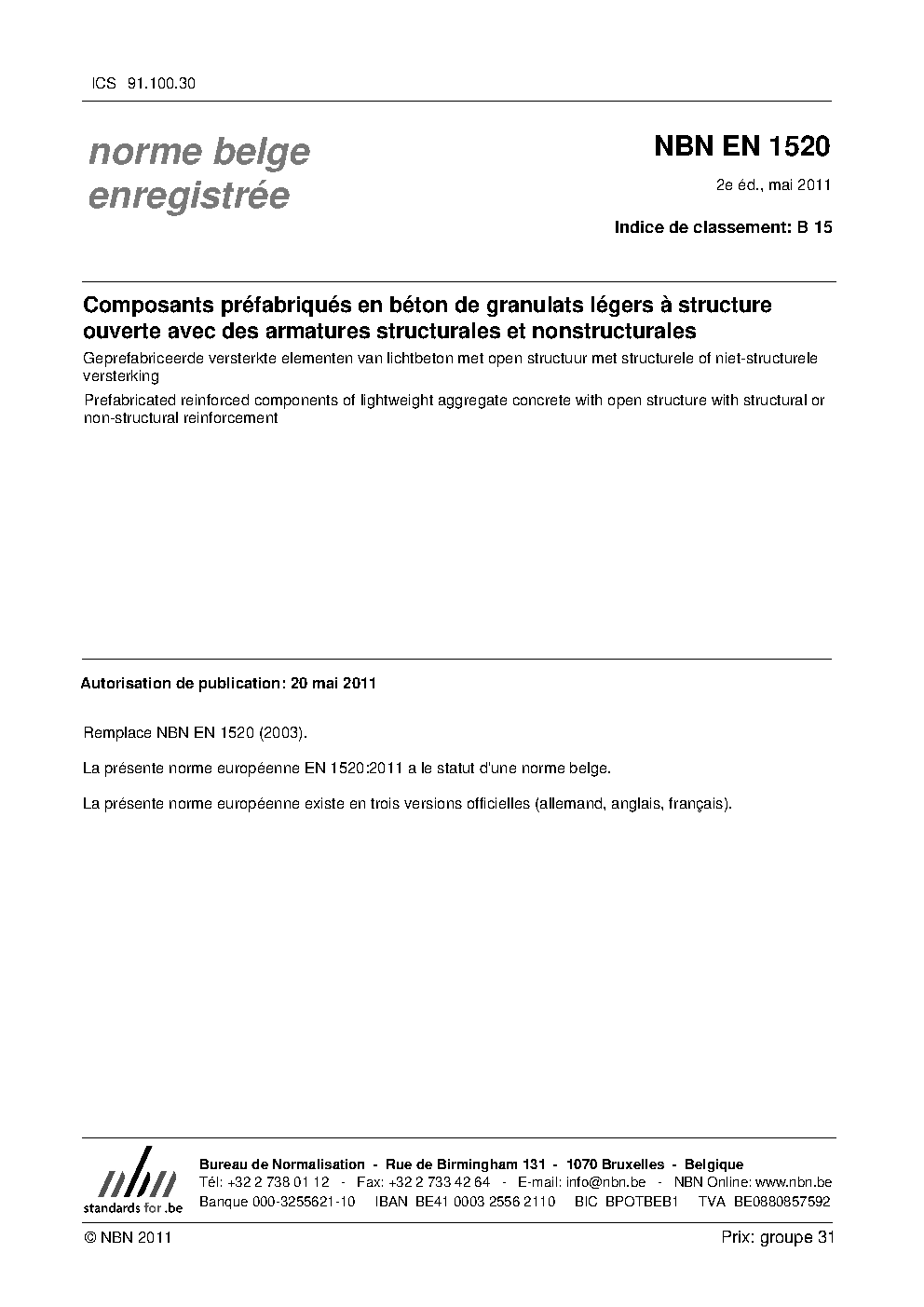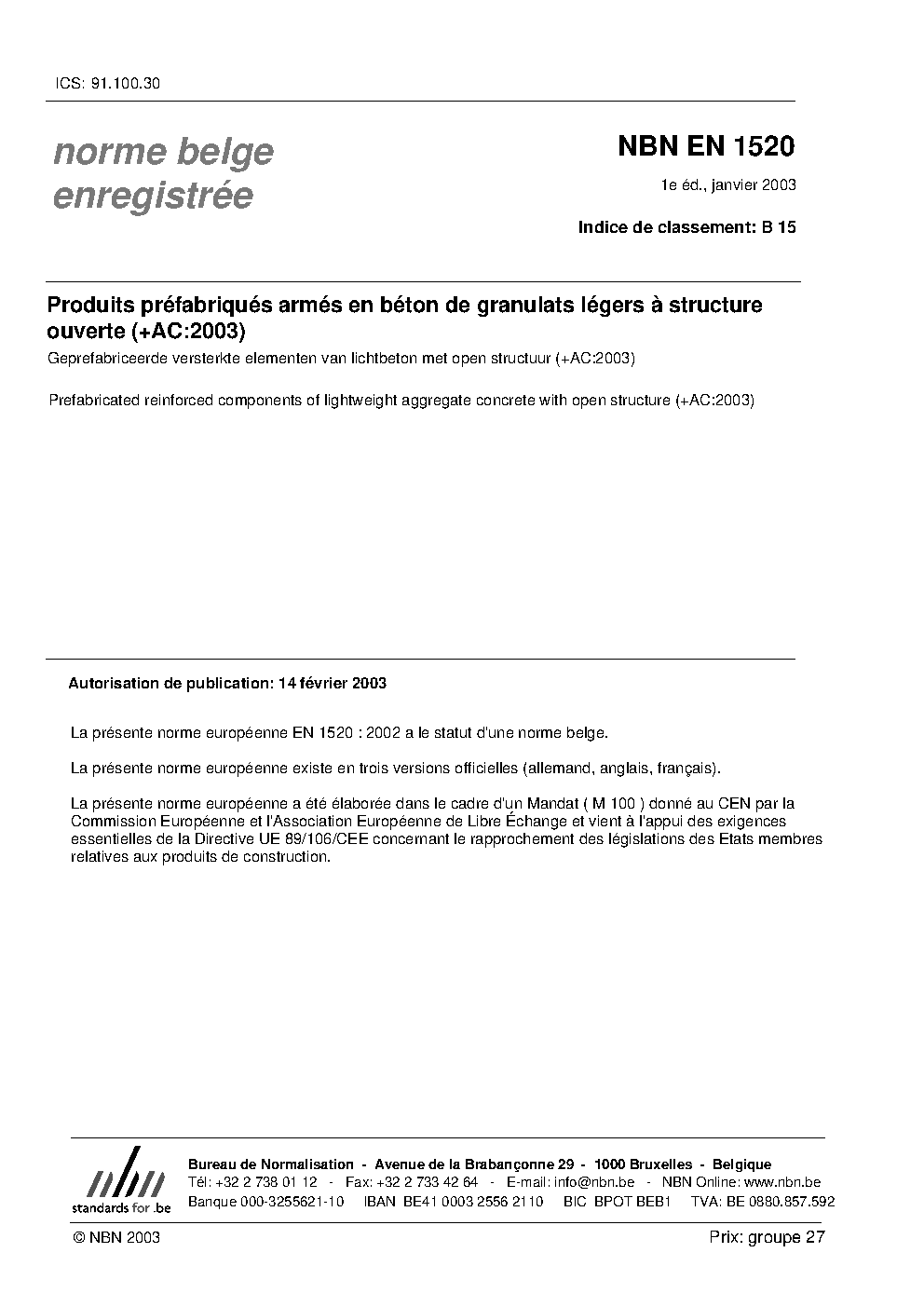 | Publisher | Bureau de Normalisation Belge (NBN) |