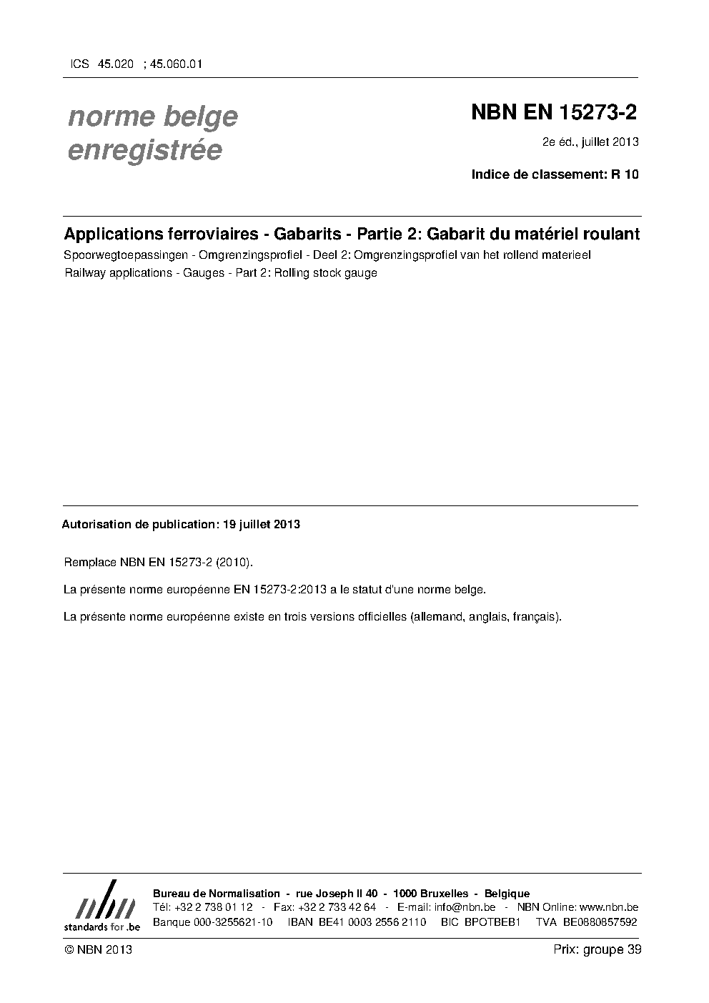 | Publisher | Bureau de Normalisation Belge (NBN) |