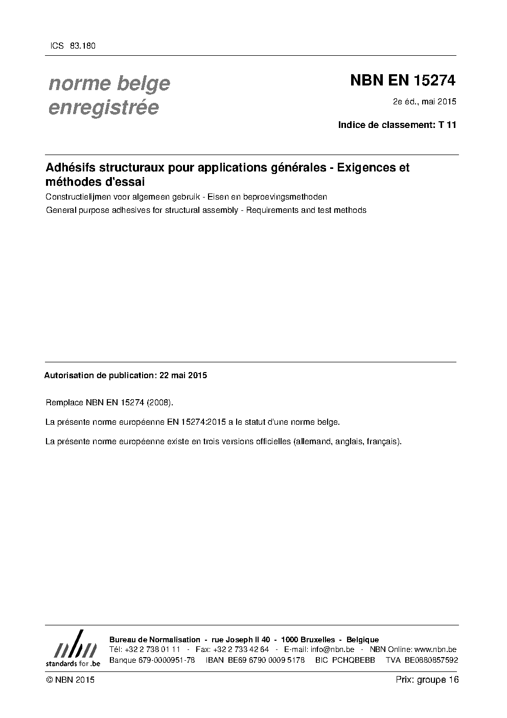 | Publisher | Bureau de Normalisation Belge (NBN) |