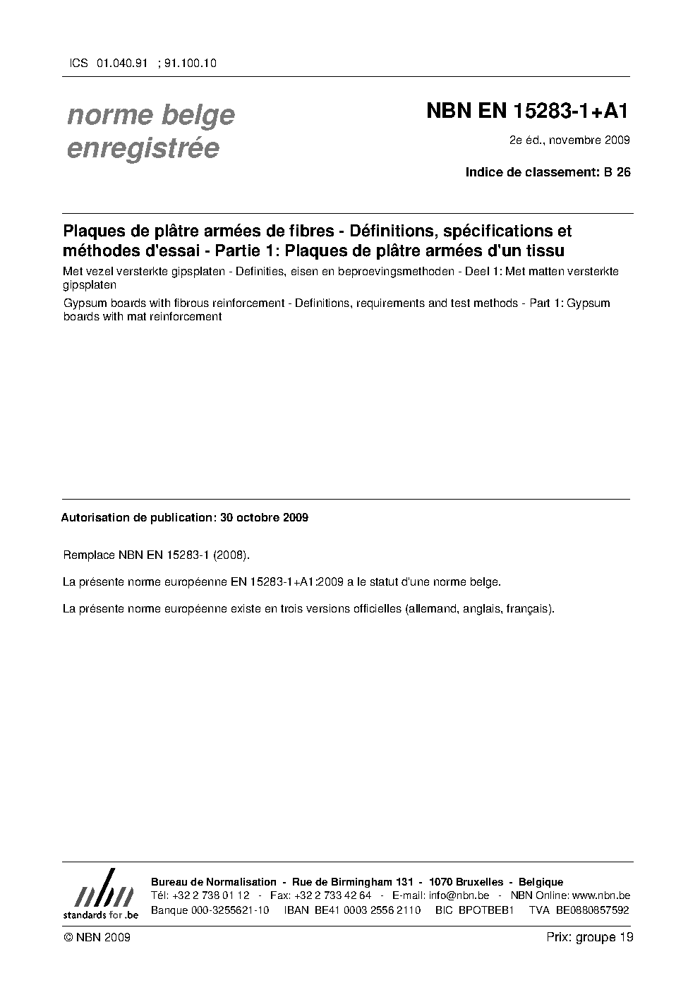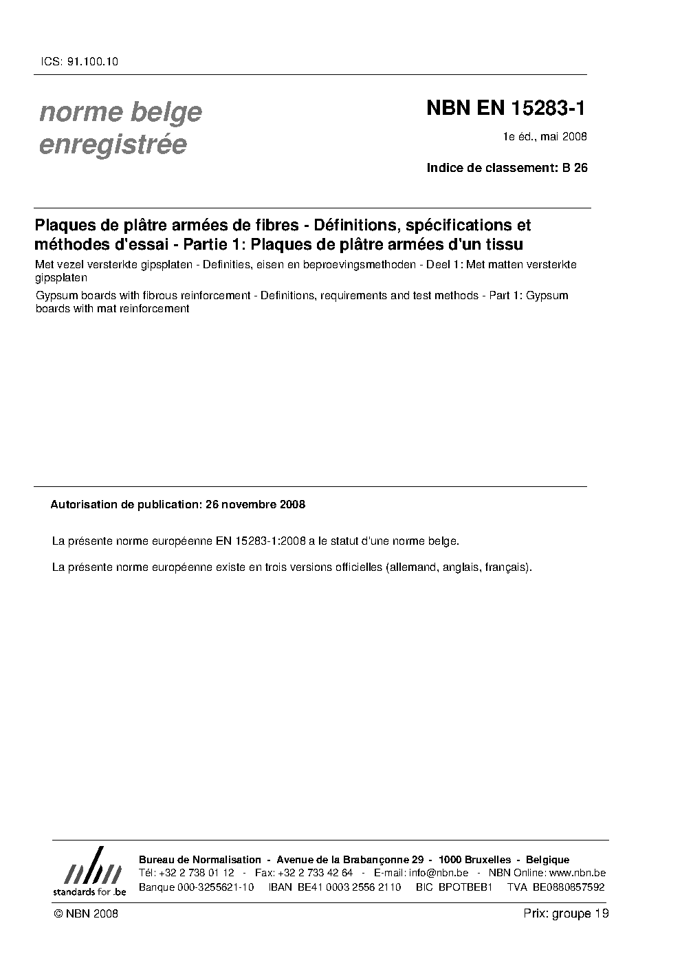 | Publisher | Bureau de Normalisation Belge (NBN) |