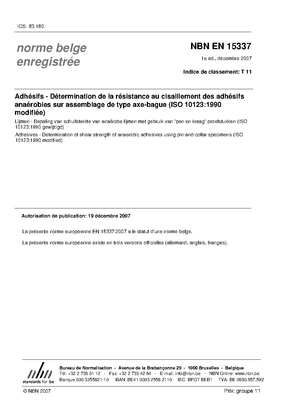 | Publisher | Bureau de Normalisation Belge (NBN) |