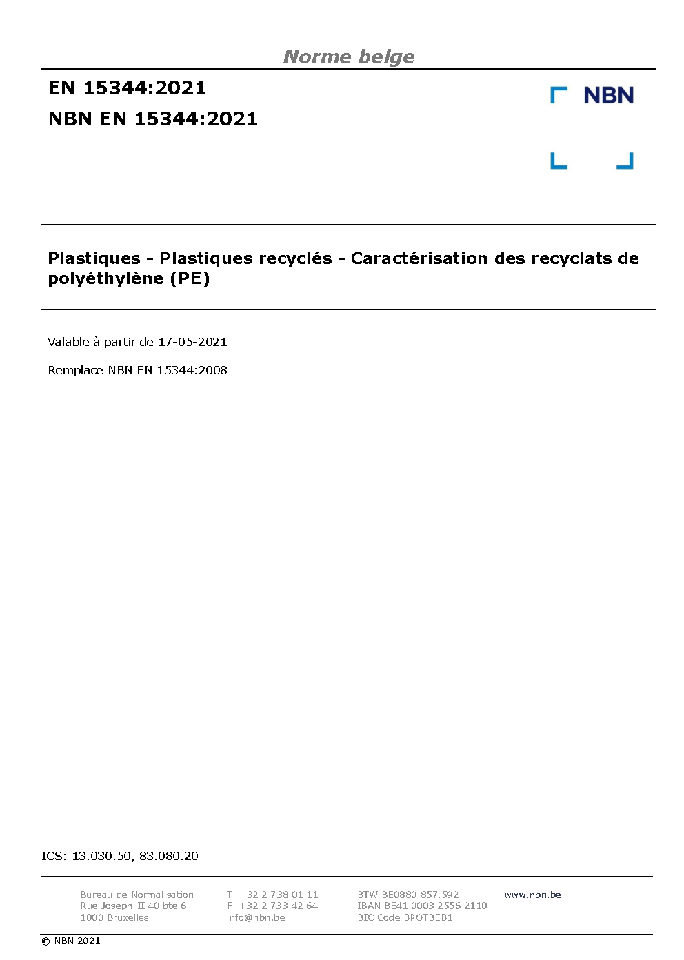 | Publisher | Bureau de Normalisation Belge (NBN) |