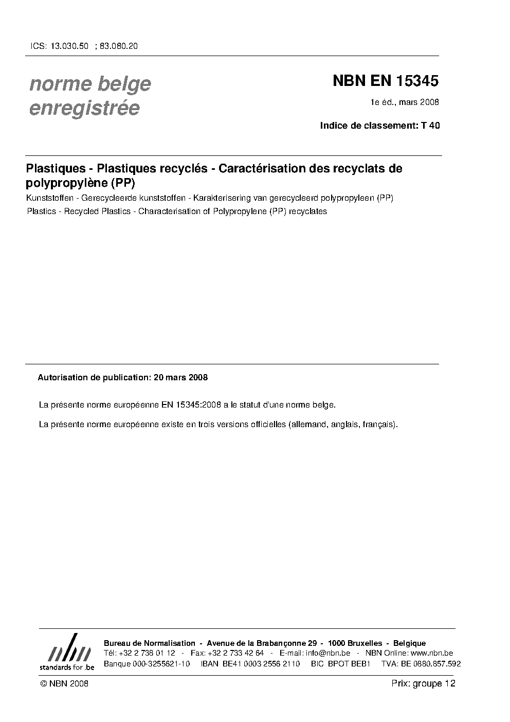 | Publisher | Bureau de Normalisation Belge (NBN) |