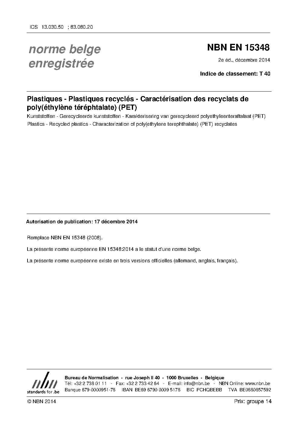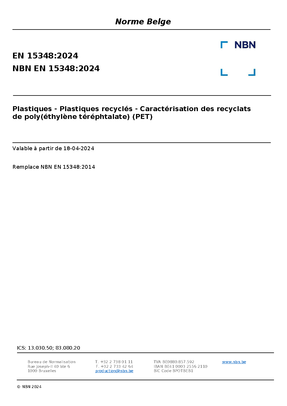 | Publisher | Bureau de Normalisation Belge (NBN) |