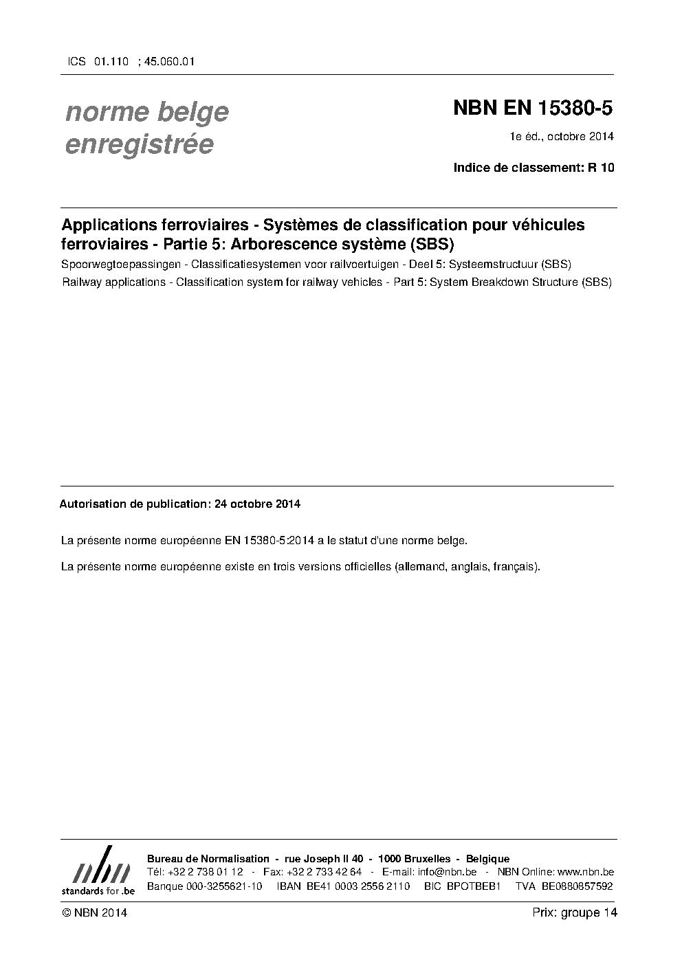 | Publisher | Bureau de Normalisation Belge (NBN) |
