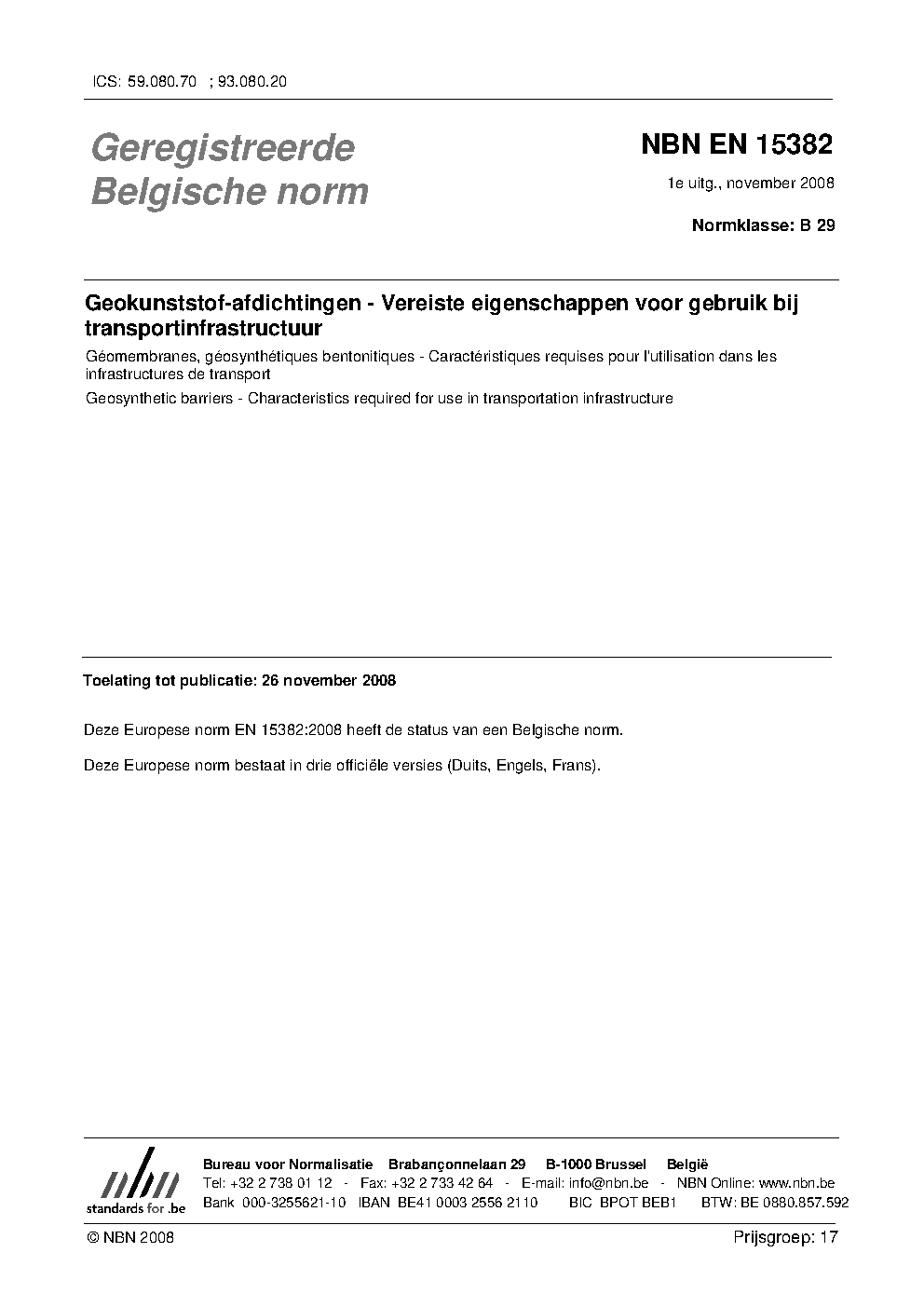 | Publisher | Bureau de Normalisation Belge (NBN) |