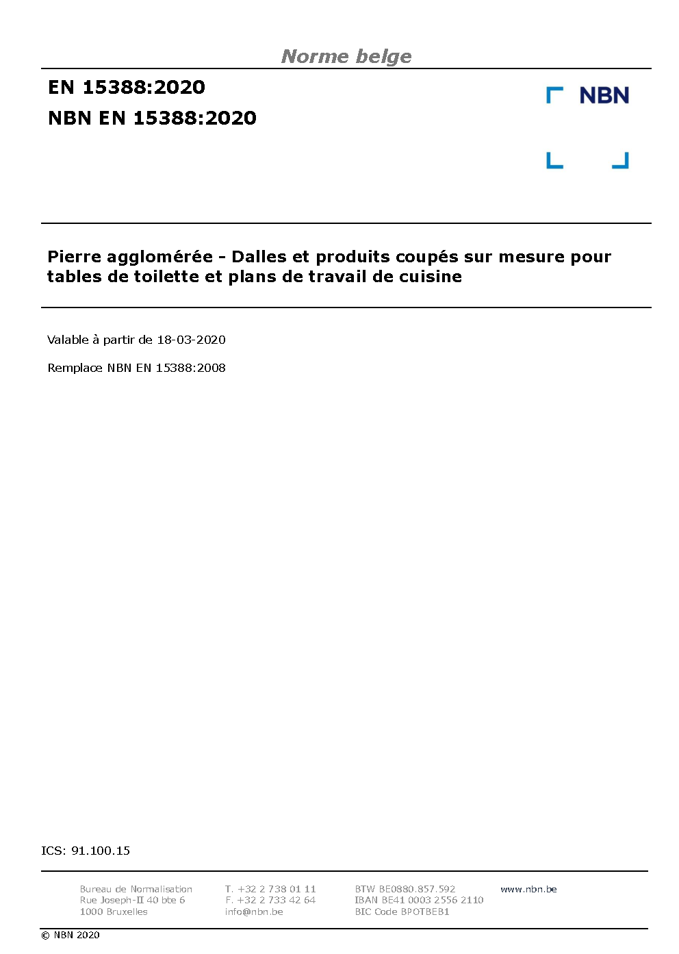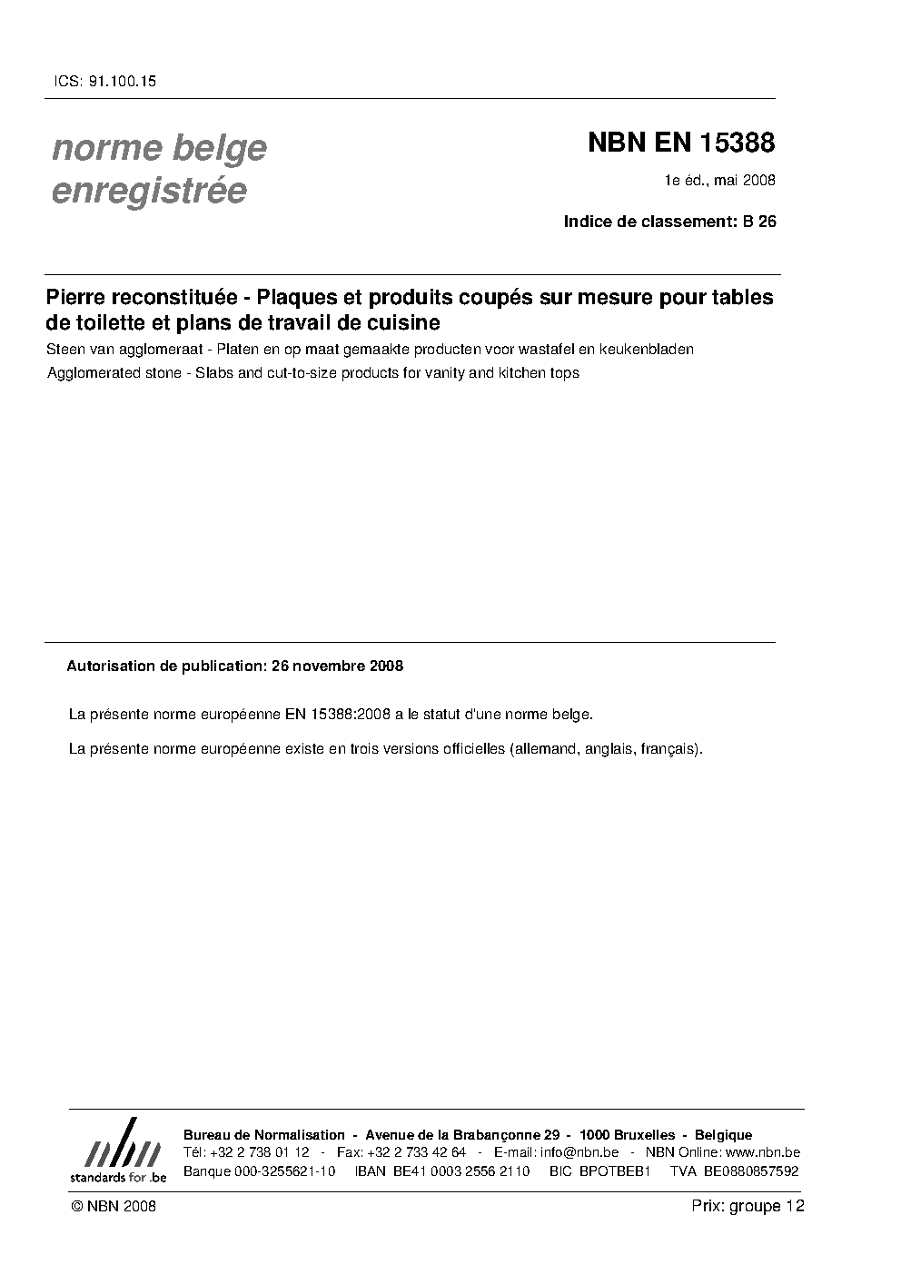 | Publisher | Bureau de Normalisation Belge (NBN) |
