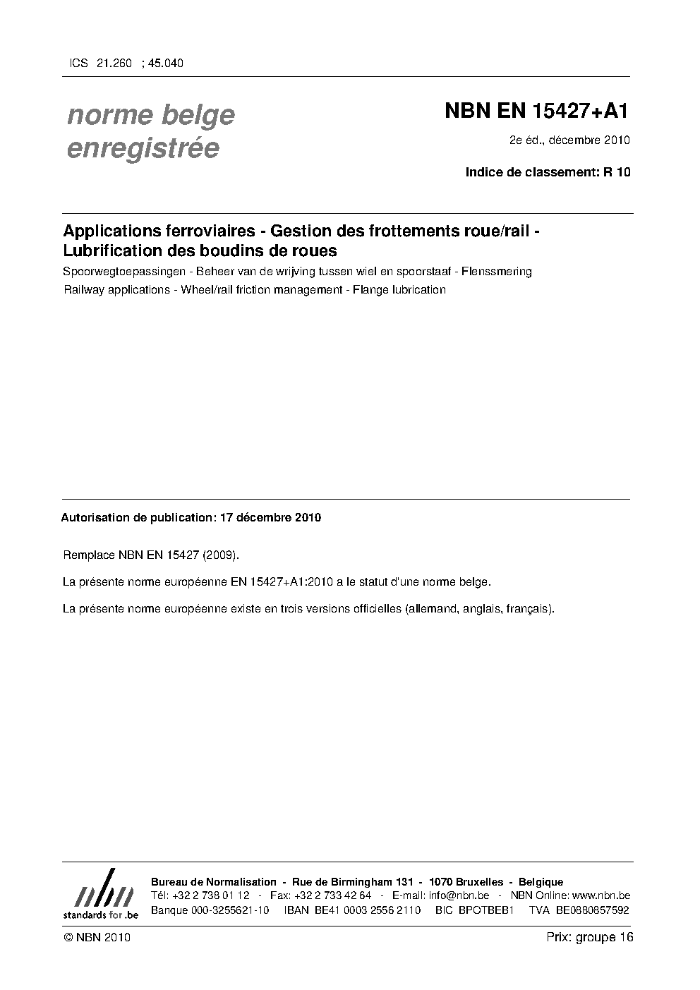 | Publisher | Bureau de Normalisation Belge (NBN) |