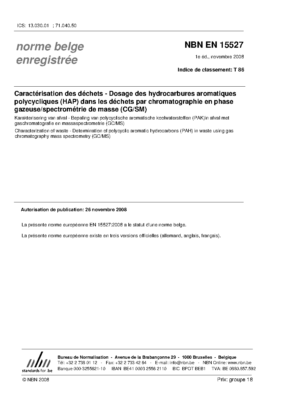 | Publisher | Bureau de Normalisation Belge (NBN) |