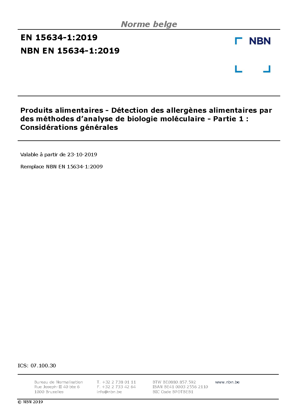 | Publisher | Bureau de Normalisation Belge (NBN) |
