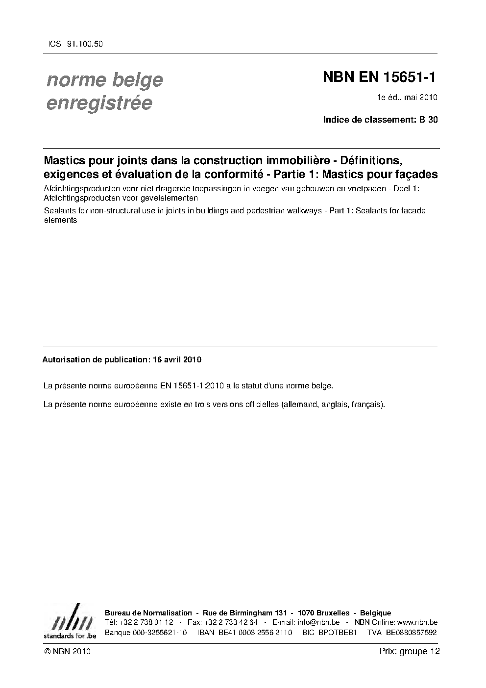 | Publisher | Bureau de Normalisation Belge (NBN) |